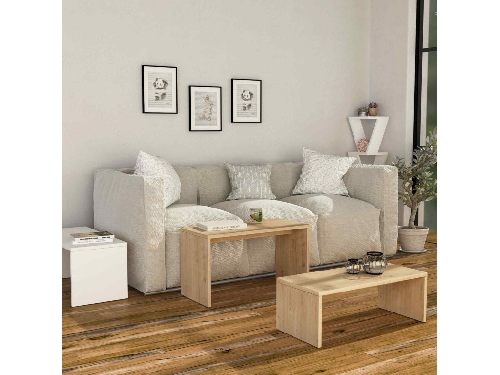 Představujeme vám KANTRA, konferenční stolek, který je dokonalým doplňkem pro váš obývací pokoj. Jeho moderní a designový vzhled, kombinace dubové a bílé barvy, dodá vašemu interiéru svěží a elegantní vzhled.