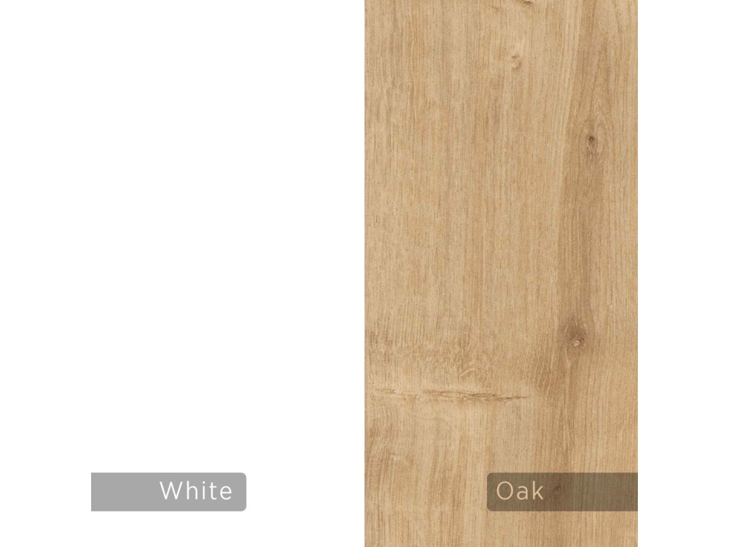 KANTRA není jen obyčejný konferenční stolek, ale je to i stylový kousek nábytku, který oživí váš obývací pokoj. S kombinací dubové a bílé barvy se skvěle hodí do různých interiérových stylů. Melamin a VT laminát zajišťují vysokou odolnost a dlouhou životnost, a tak si můžete užívat jeho krásu po dlouhou dobu. Vyberte si KANTRA konferenční stolek a přineste moderní design do svého domova.