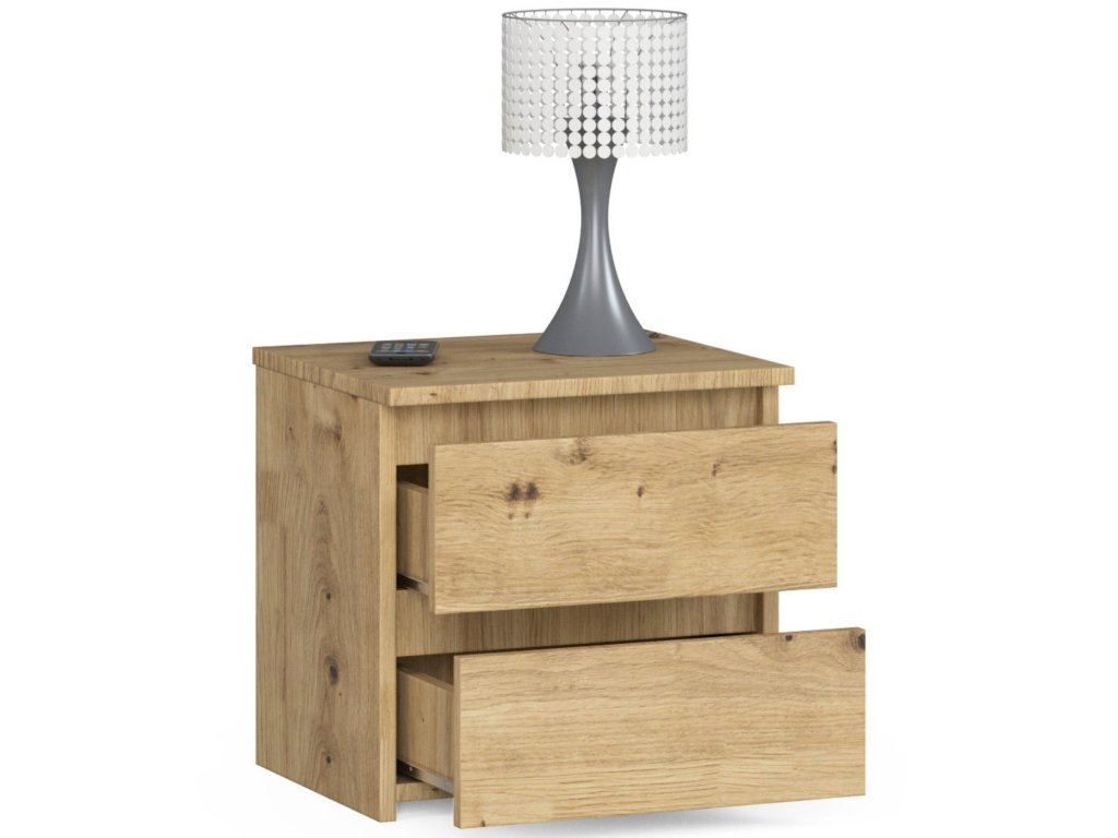 Odolný materiál LTD zajišťuje, že stolek vydrží běžné denní používání a zachová si svůj estetický vzhled po dlouhá léta. Přírodní odstín dubu Artisan dodává stolku teplý a příjemný vzhled, který se skvěle kombinuje s různými styly ložnic. Funkce tichého dovírání garantuje, že zásuvky se budou zavírat plynule a tiše, což přidává na komfortu používání. S dvěma prostornými zásuvkami máte dostatek místa pro uložení všech vašich nočních potřeb.