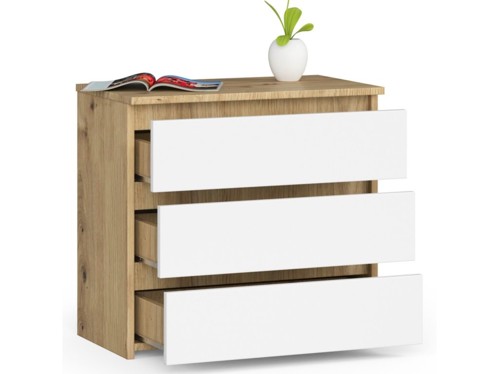 - Barva: Elegantní kombinace dubu artisan a čisté bílé, která dodává nábytku svěží vzhled.