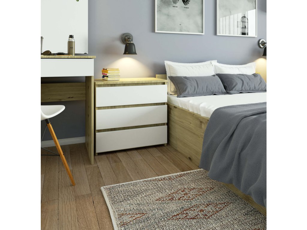 - Vybavení: 3 prostorné zásuvky pro uskladnění všech vašich nočních potřeb.