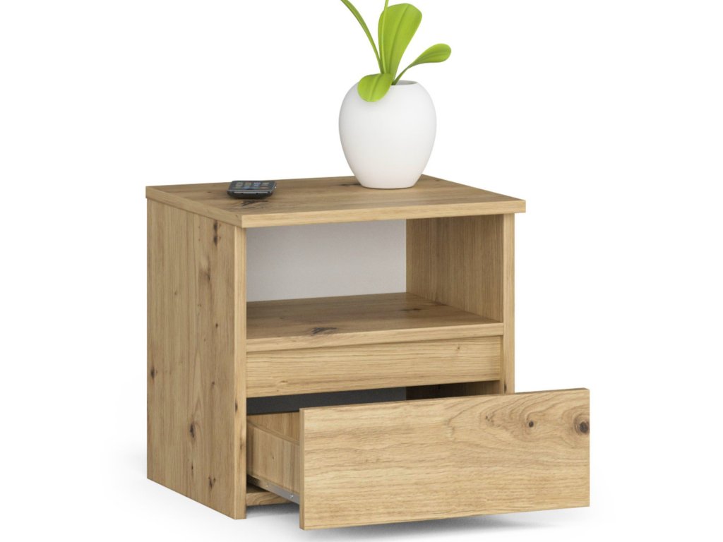 Materiál LTD zaručuje dlouhou životnost a snadnou údržbu. Díky funkci tichého dovírání máte jistotu, že zásuvka stolečku bude vždy dokonale zavřená. Barva dub Artisan dodá vaší ložnici teplý a přírodní vzhled. Designový vzhled nočního stolku LENKA40 přináší do vašeho interiéru špetku luxusu a modernosti.