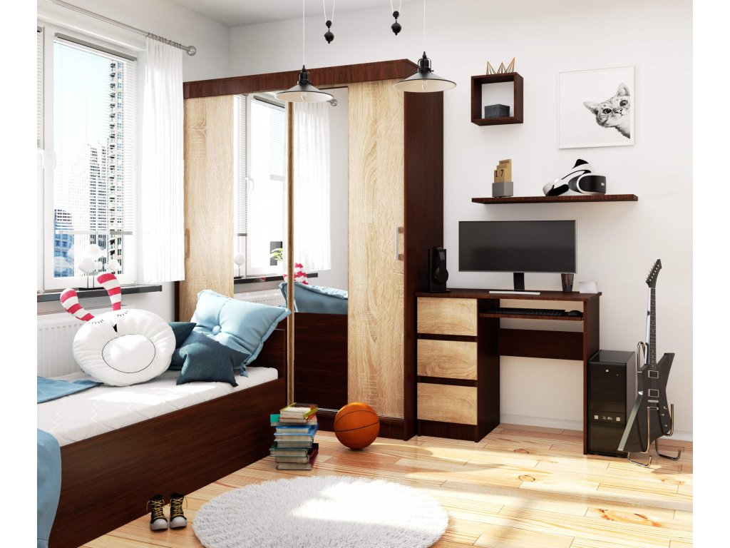JIŘÍ90L redefinuje moderní nábytkový design díky kombinaci tmavého wenge s teplým dubem Sonoma. Tento psací stůl je ideální volbou pro ty, kteří hledají kombinaci elegance, funkčnosti a bezčasového vzhledu, vhodnou jak do dětského pokoje, tak do kanceláře či pracovny.