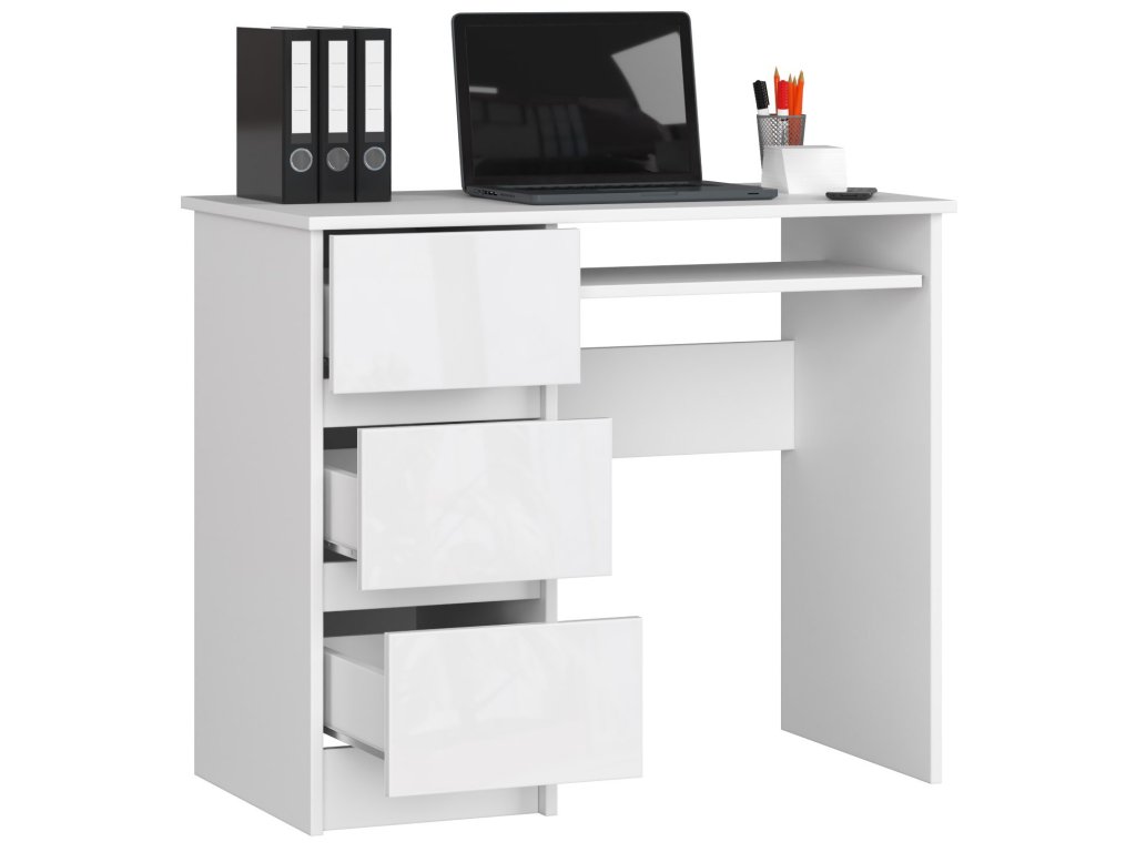 Designový psací stůl JIŘÍ90L, bílý / bílý lesk