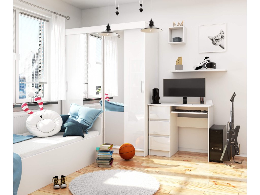 Představujeme JIŘÍ90L - dokonalý psací stůl, který spojuje moderní design s funkcionalitou, a je ideální pro dětský pokoj, kancelář i pracovnu. Jeho kombinace čisté bílé s bílým leskem dodává vašemu prostoru výjimečný nádech elegance.