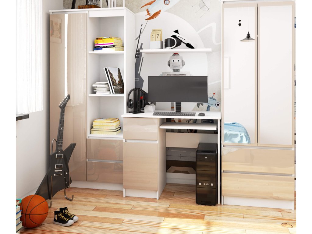 Designový psací stůl PIXEL90L, bílá / cappuccino lesk