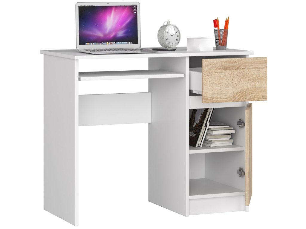 Designový psací stůl PIXEL90P, bílý / dub Sonoma