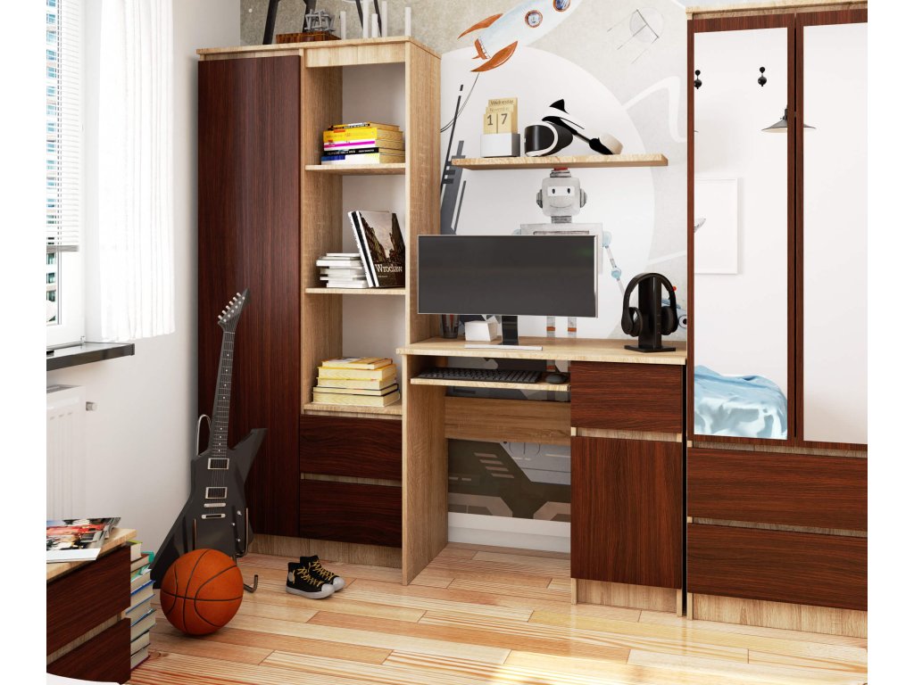 Hledáte stůl, který kombinuje tradiční a moderní prvky? Psací stůl PIXEL90P skvěle spojuje teplý odstín dubu Sonoma s hloubkou a elegancí wenge, čímž vytváří ideální nábytek pro dětský pokoj, kancelář nebo pracovnu.