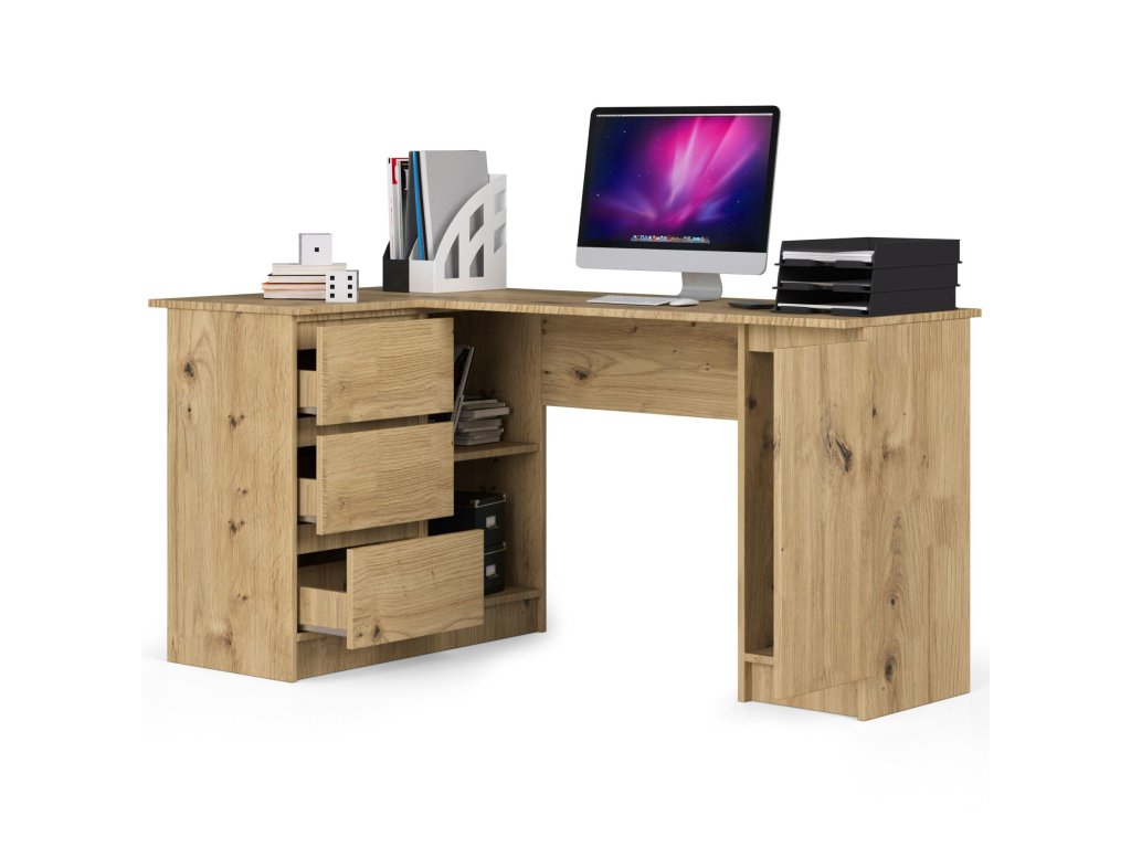 Představujeme ROMAN155L – dokonale navržený psací stůl, který spojuje funkcionalitu s vysokou estetikou. Jeho odstín dubu Artisan dodá vašemu interiéru hřejivý a přesto moderní vzhled.