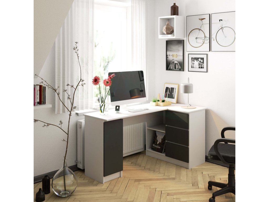 Hledáte stůl, který kombinuje nejen funkčnost, ale i jedinečný design? ROMAN155P je psací stůl, který představuje dokonalou harmonii bílé a grafitové barvy. Ideální doplněk do dětského pokoje, kanceláře nebo pracovny, tento stůl zaujme svým moderním vzhledem.