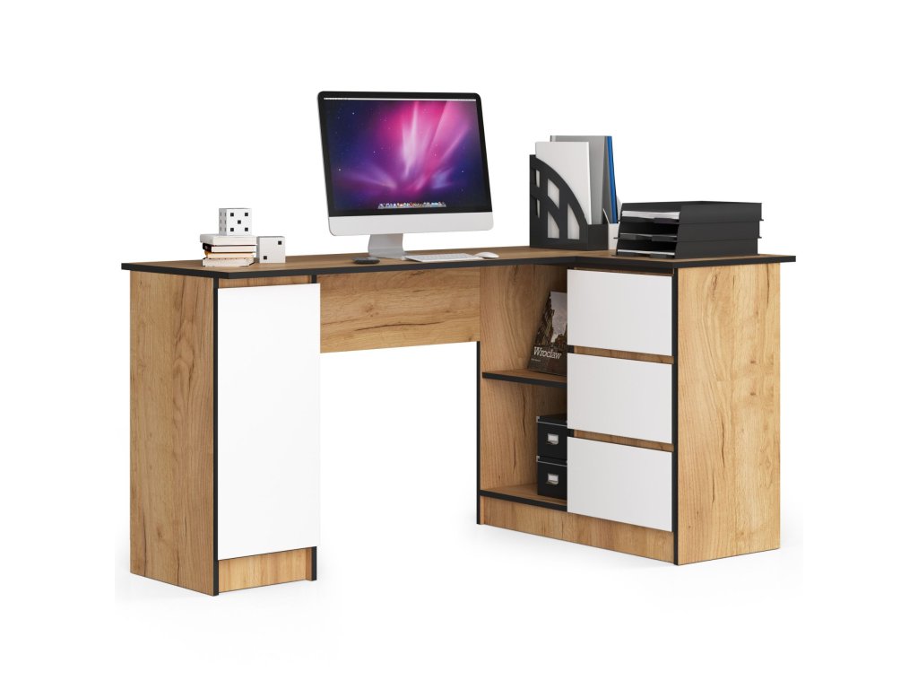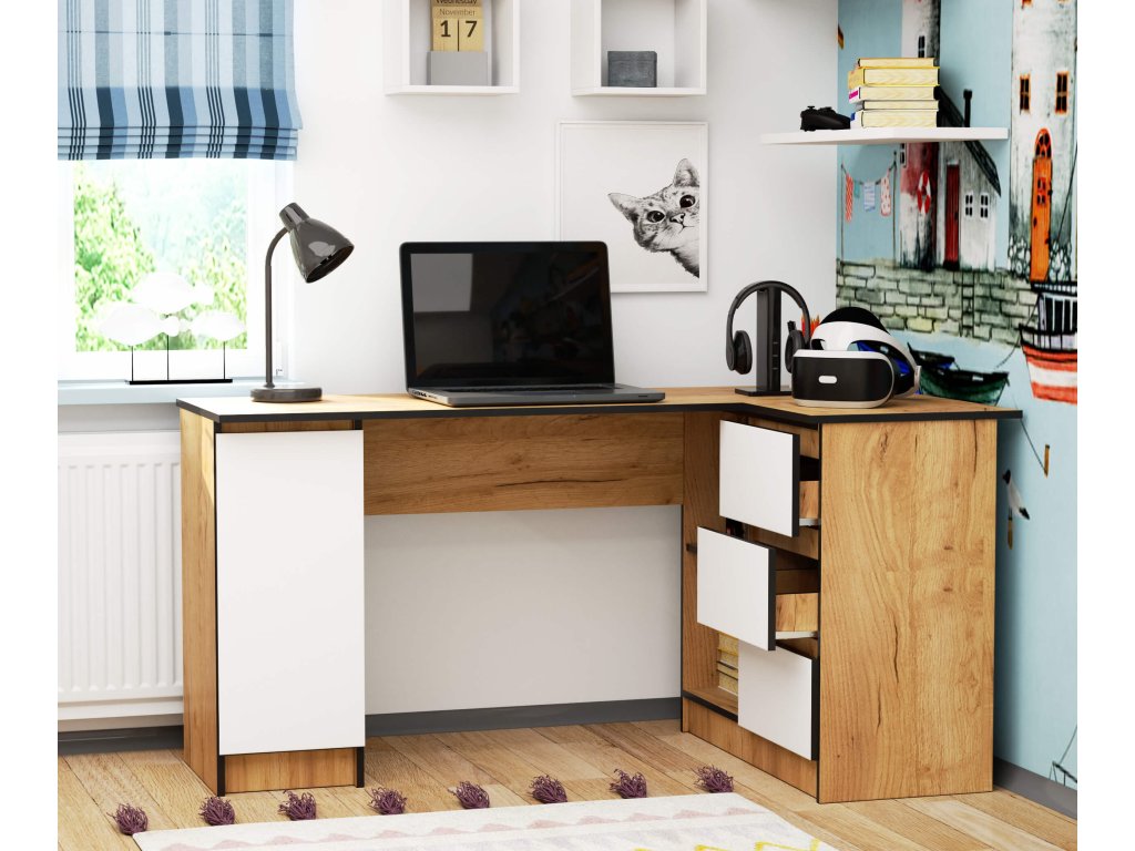 Představujeme ROMAN155P - moderní psací stůl s designovým nádechem. S jeho bílým provedením v dekoru dubu Craft se stane nepřehlédnutelným kouskem vašeho interiéru, ať už v dětském pokoji, kanceláři či pracovně.