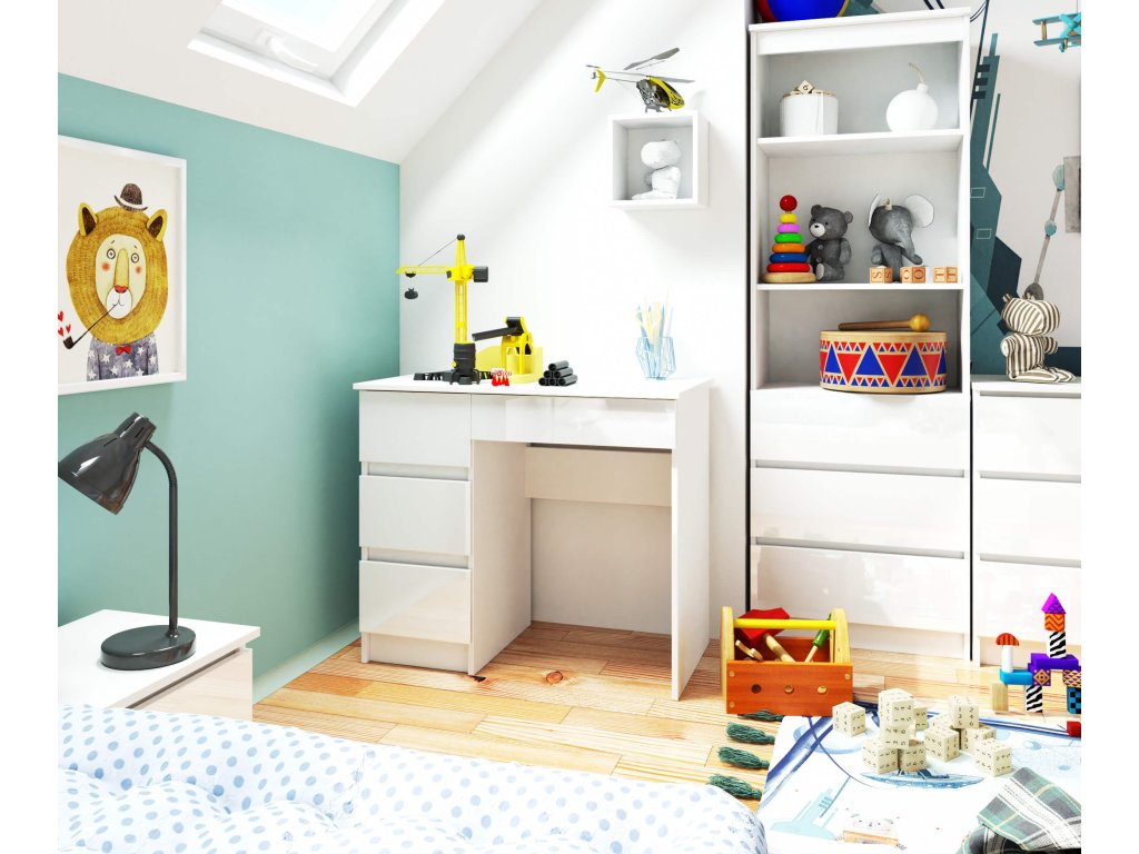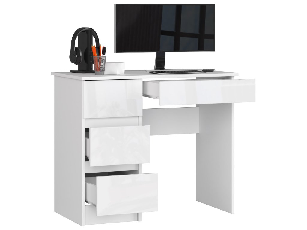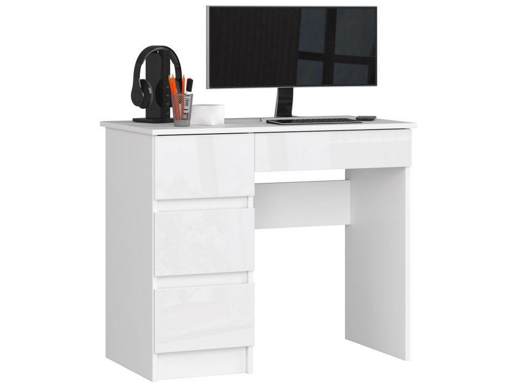 Designový psací stůl ZEUS90L, bílý / bílý lesk
