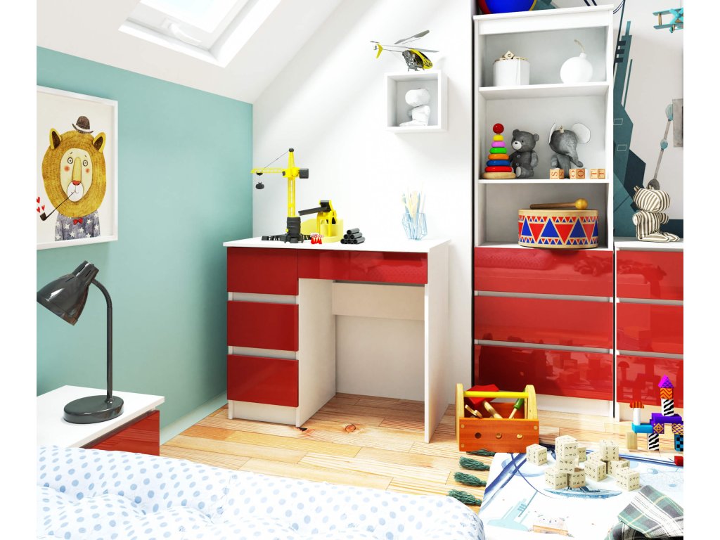 Oživte svůj interiér s ZEUS90L, psacím stolem, který kombinuje bílou barvu s nápaditým červeným leskem. Tento stůl představuje ideální spojení estetiky a funkčnosti a stane se skvělým doplňkem pro váš dětský pokoj, kancelář nebo pracovnu.