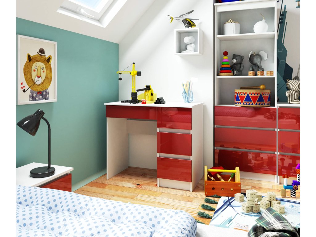 Psací stůl ZEUS90P: Oživení interiéru bílou a červeným leskem