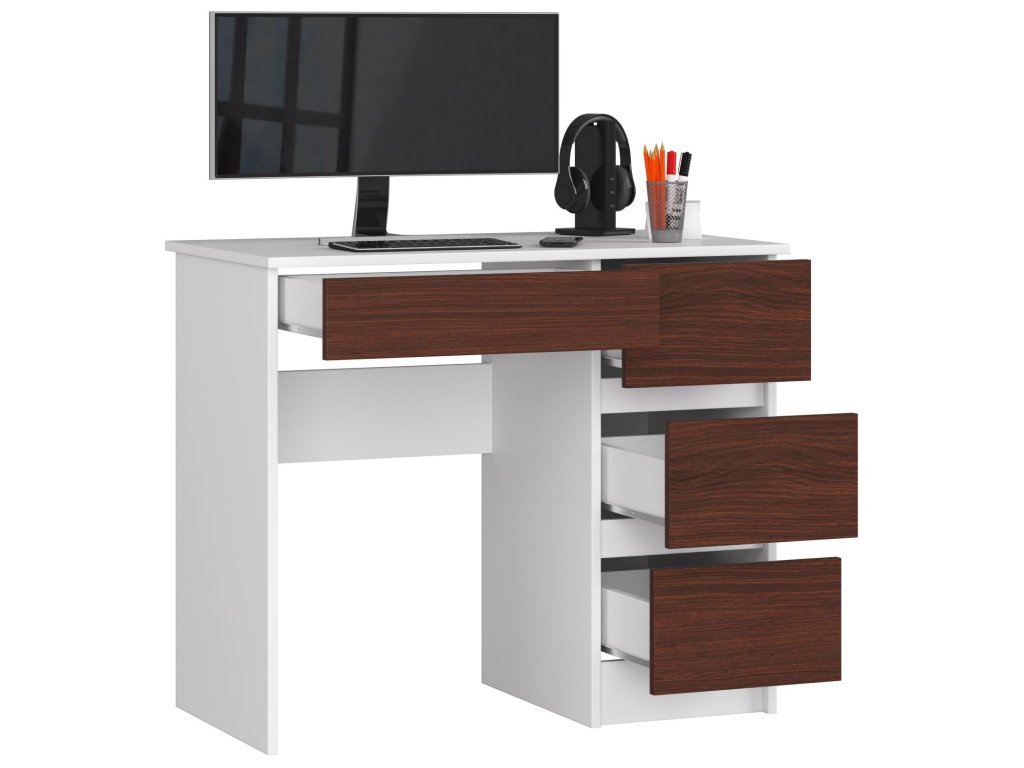 Psací stůl ZEUS90P: Moderní kombinace bílé a wenge