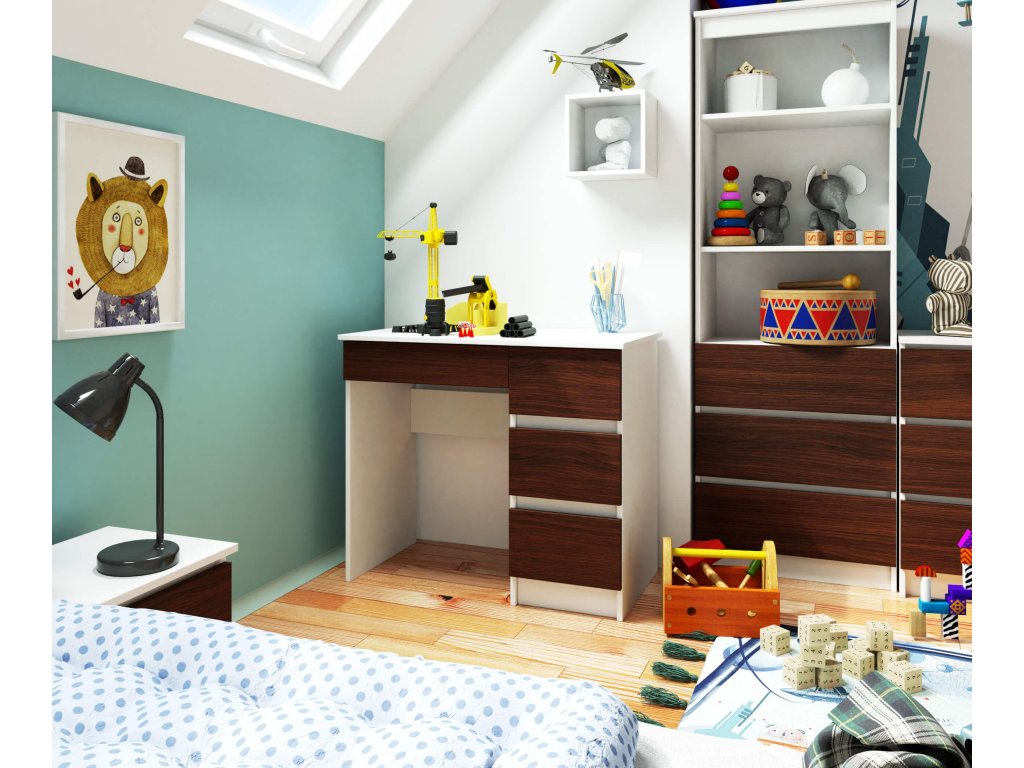 Prezentujeme ZEUS90P, psací stůl s moderním designem, který elegantně spojuje světlou bílou s hlubokým odstínem wenge. Tento psací stůl je ideální volbou pro každý dětský pokoj, kancelář nebo pracovnu, kde přinese svěží a současný vzhled.