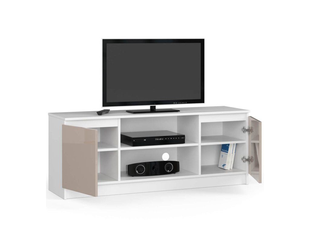 TV stolek ROMANA140: Elegantní kombinace bílé a capuccino lesku