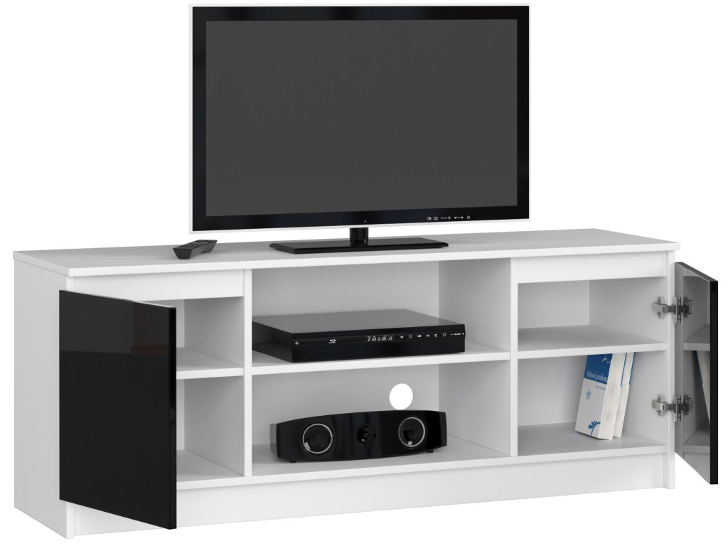 Designový TV stolek ROMANA140, bílý / černý lesk
