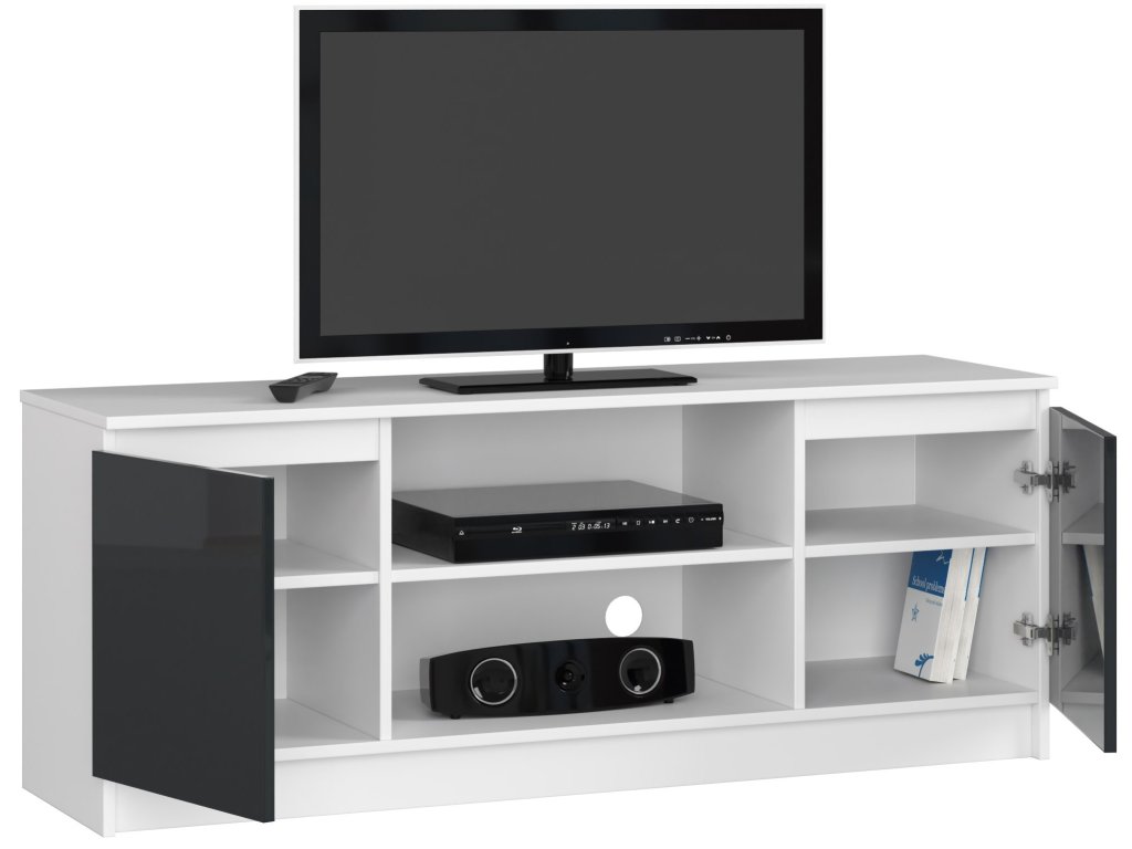 TV stolek ROMANA140: Luxusní kombinace bílé a grafitového lesku