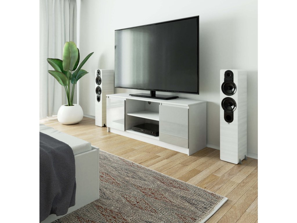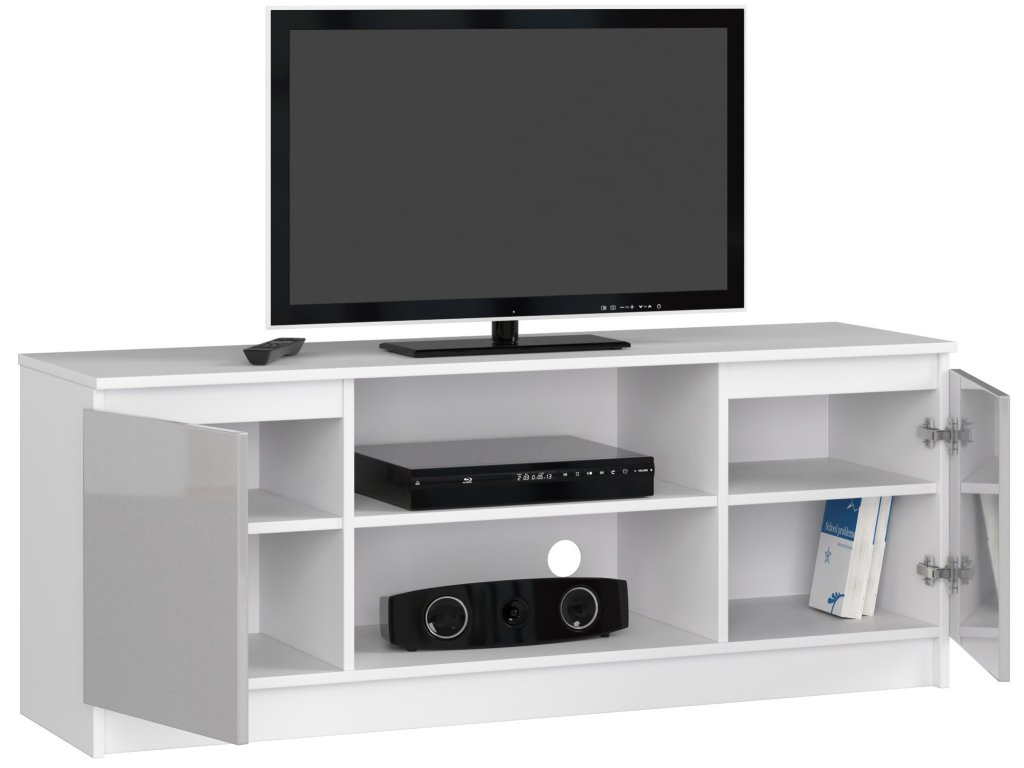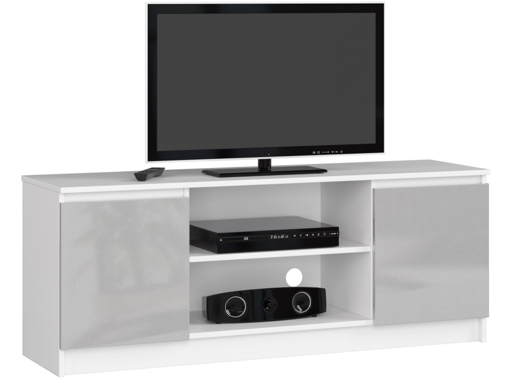 Designový TV stolek ROMANA140, bílý / metalický lesk
