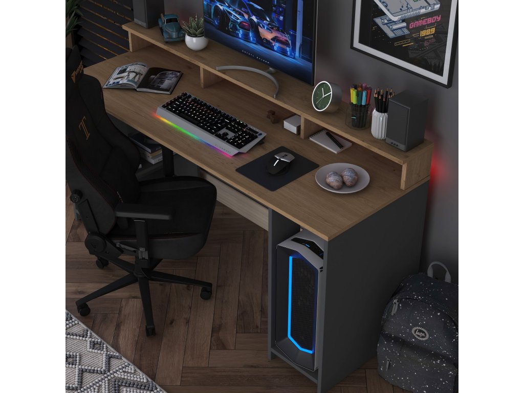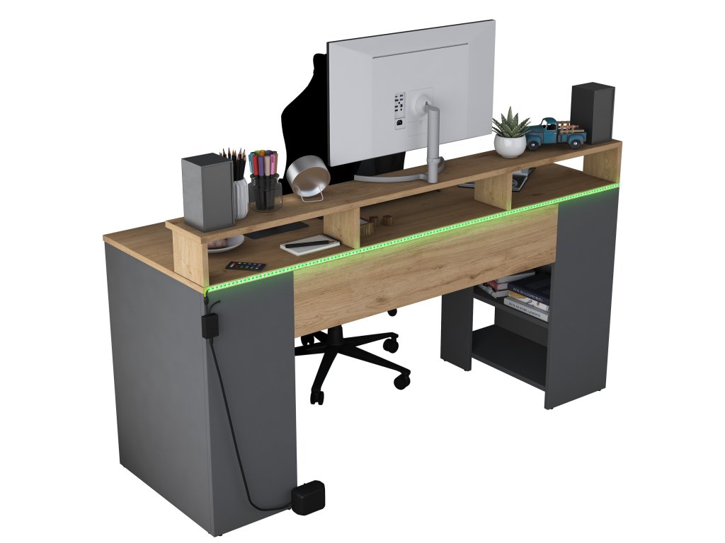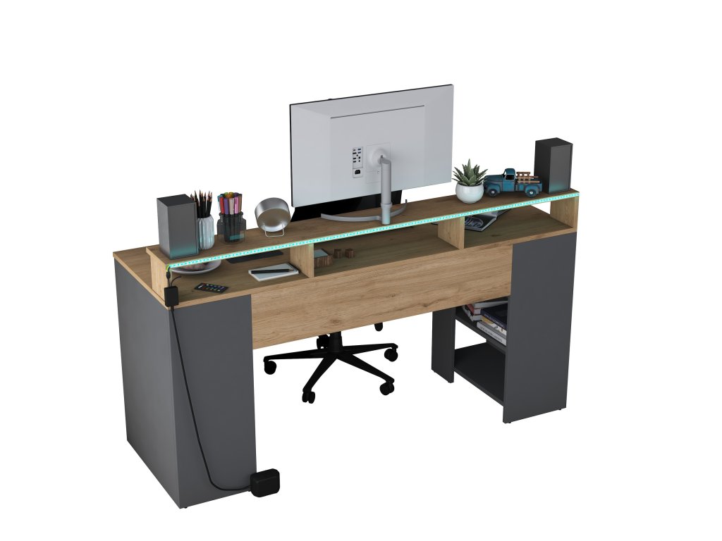 Psací stůl DESK je ideálním řešením pro všechny, kteří hledají praktický pracovní prostor s moderním designem. Kombinace ořechového dekoru a antracitové barvy přináší elegantní vzhled, který skvěle zapadne do dětského pokoje, kanceláře nebo pracovny.