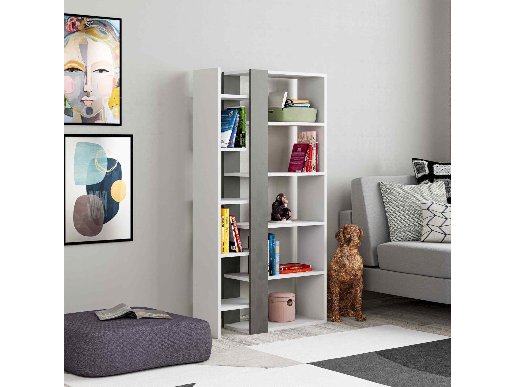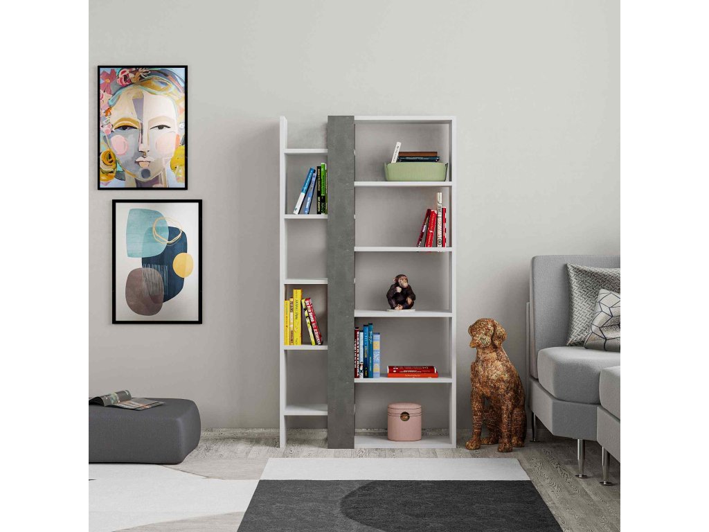 Dizajnová knihovna ZAPHIRA, bílá / retro šedá