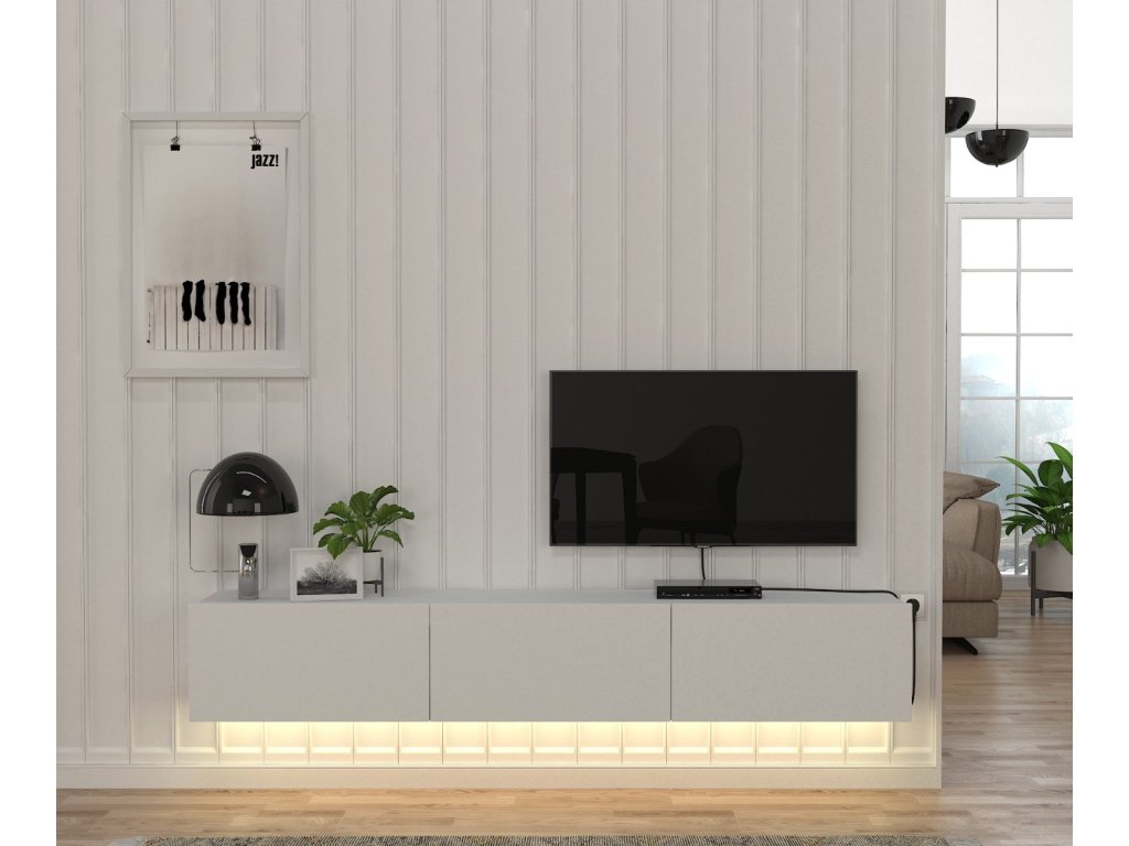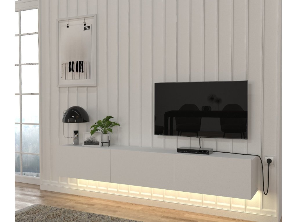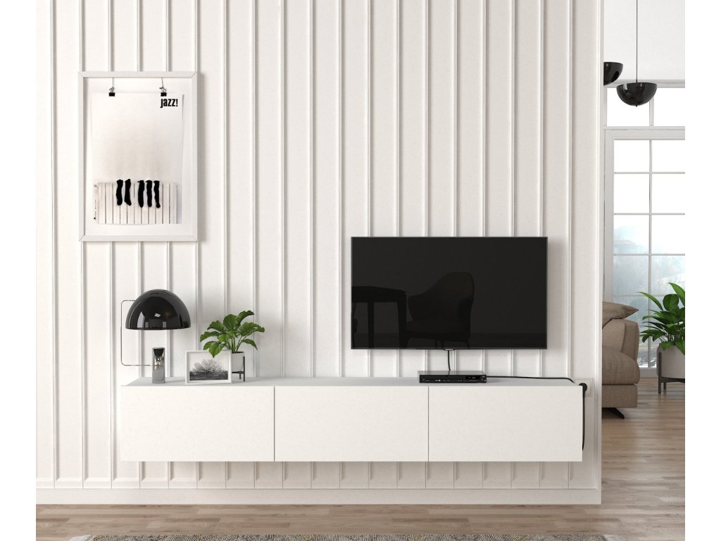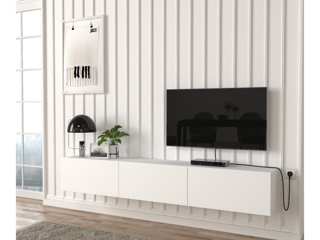 Moderní a stylový TV stolek DOMEL vás osloví svým minimalistickým designem a příznivou cenou. Je ideální do moderně zařízených prostor a díky závěsnému systému působí vzdušně a stylově.