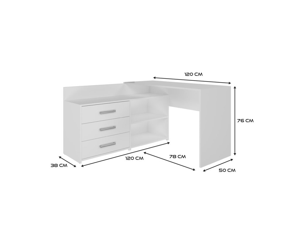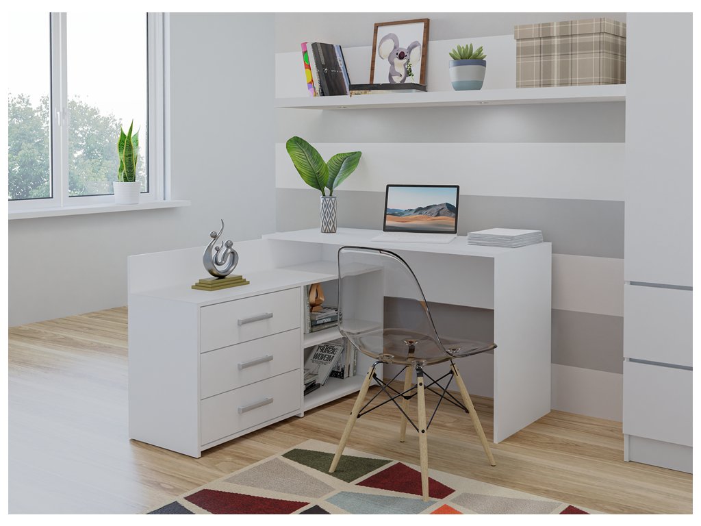 Moderní rohový pracovní stůl DANY poskytuje komfortní pracovní prostor a bohatý úložný prostor v komodě, která je jeho součástí. Je vhodný jak do pracovny, tak do dětského či studentského pokoje. Komoda obsahuje 3 prostorné zásuvky na válečkových vodicích kolejích, které zajistí pohodlné a především bezpečné používání.