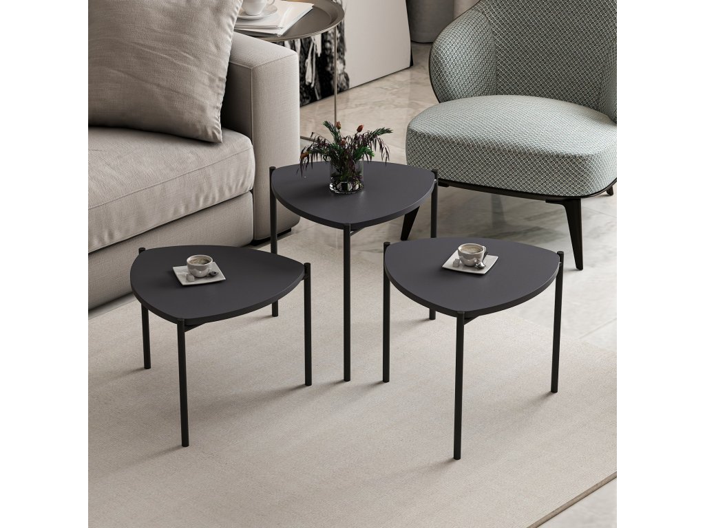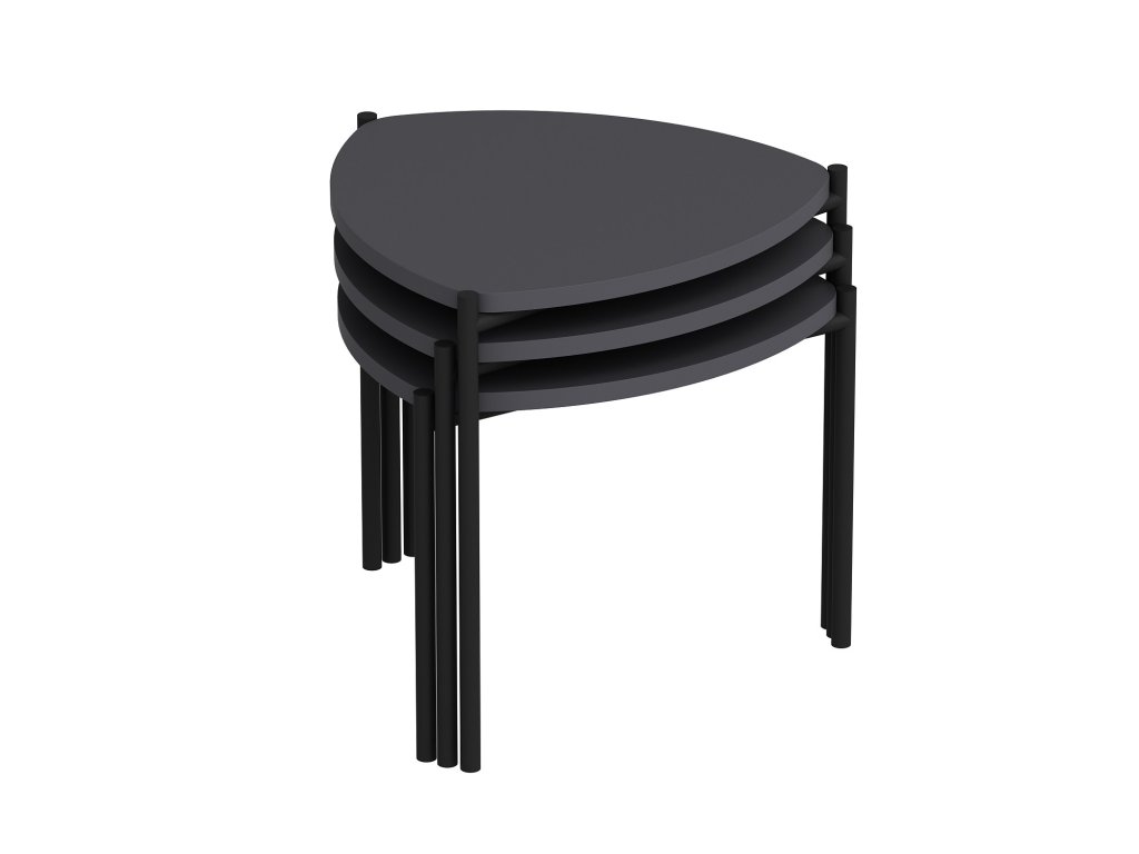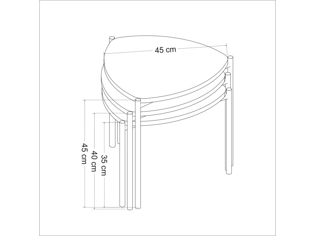 Sada obsahuje třivkládacístolky, každý s jinou výškou. To vám umožní používat je samostatně nebo je stohovat na sebe, abyste ušetřili místo, když se nepoužívají. Kompaktní rozměry každého stolku (šířka 45 cm, hloubka 45 cm) je činí ideálními do malých bytů nebo pokojů s omezeným prostorem.
