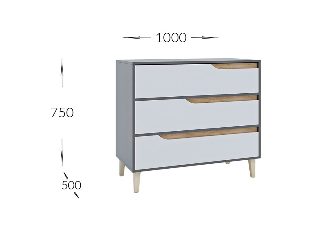Zásuvková komoda DOOWE nabízí bohatý úložný prostor v podobě tří zásuvek. Je ideální do studentských pokojů, obývacího pokoje nebo ložnice.