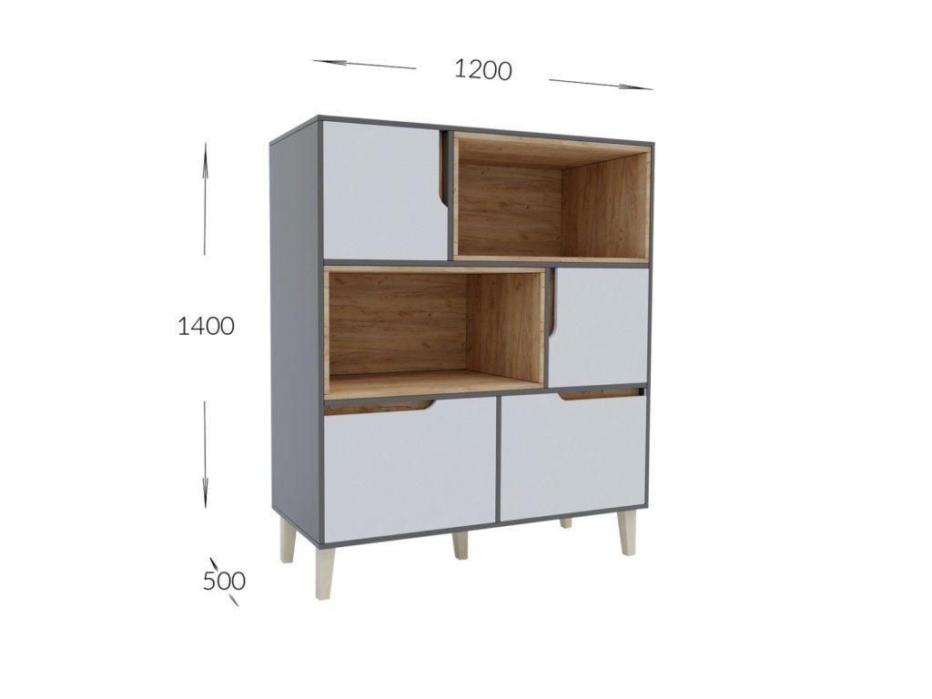 Nízký regál DOOWE nabízí bohatý úložný prostor v podobě otevřeného regálu a zavřených skříněk. Je ideální do studentských pokojů, obývacího pokoje nebo ložnice.