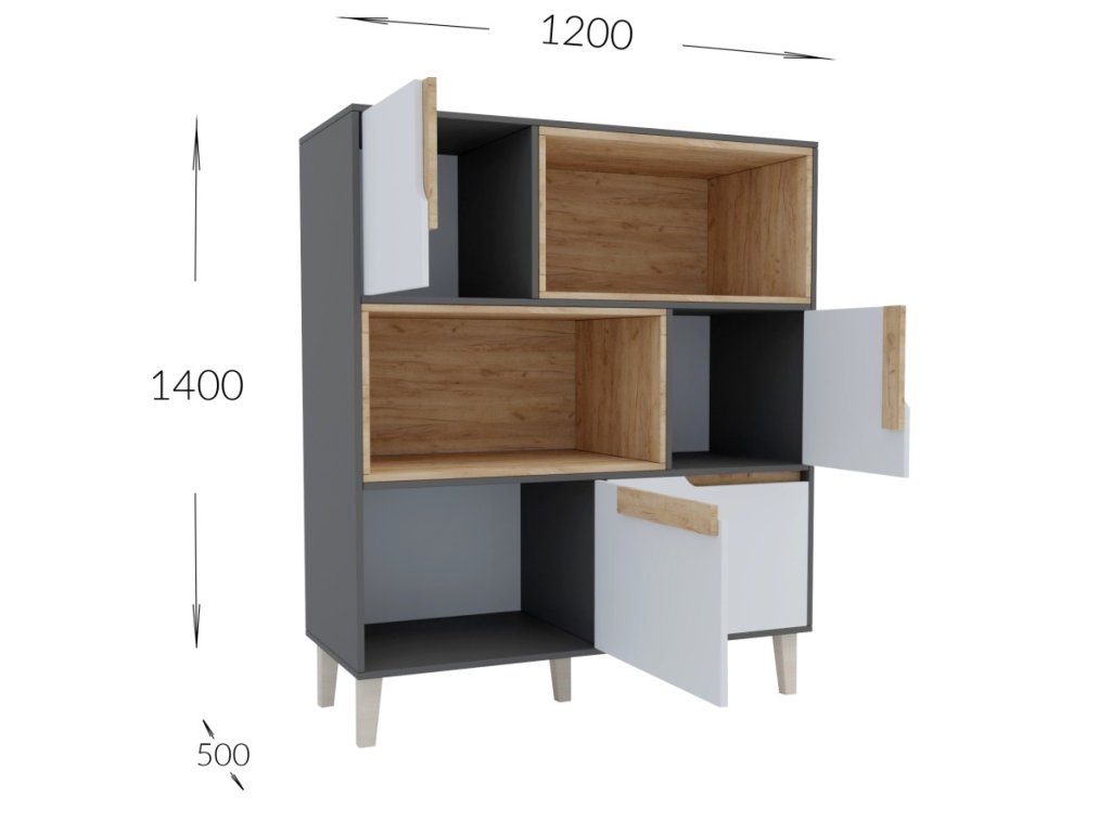 DOOWE nízký regál, antracit/bílá/dub Craft zlatý