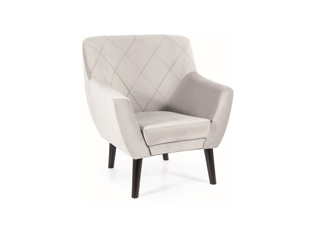 Je čalouněno kvalitní sametovou látkou Bluvel 03 ve světle šedé barvě. Ke křeslu si můžete dokoupit také pohovku DULON, kterou naleznete v naší nabídce. Křeslo má vysoké dřevěné nožičky, které jsou v barvě wenge.