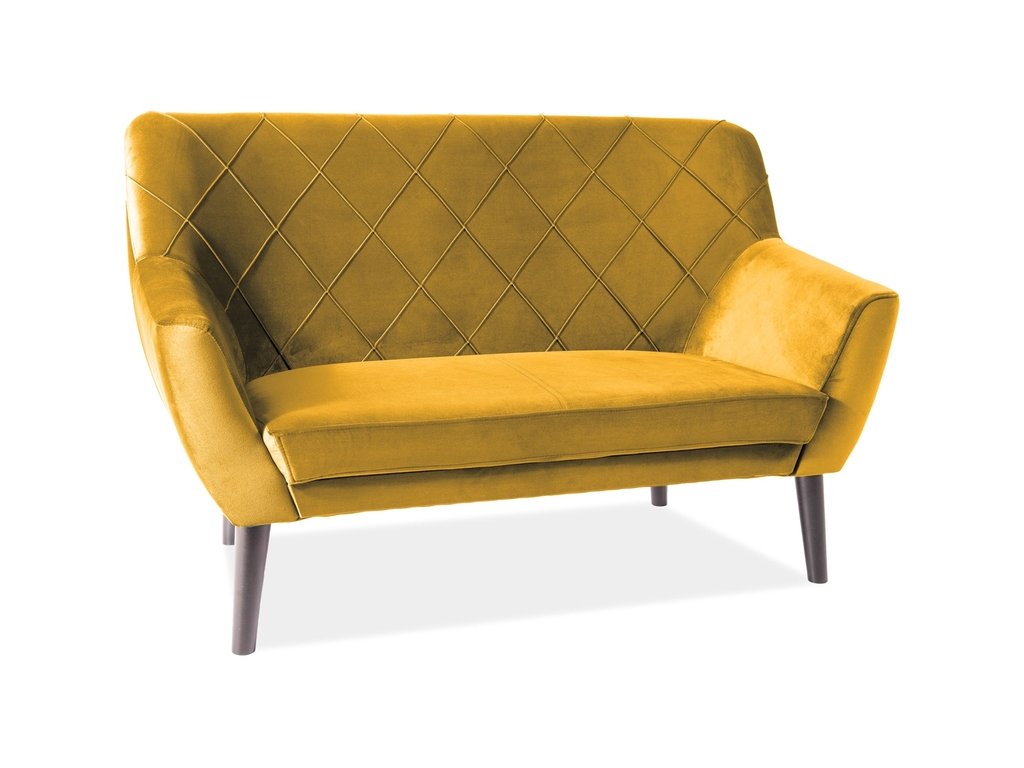 Je čalouněna kvalitní sametovou látkou Bluvel 68 ve žluté barvě. K pohovce si můžete dokoupit také křeslo DULON, které naleznete v naší nabídce. Pohovka má vysoké dřevěné nožičky, které jsou v barvě wenge.