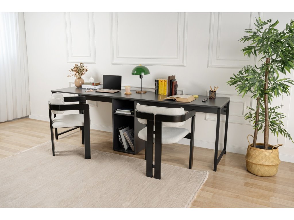 S šířkou 240 cm a četnými policemi nabízí tento stůl dostatek úložného prostoru pro všechny vaše knihy, sešity a studijní nezbytnosti. Prostřední police o šířce 34 cm a výšce 50 cm je ideální pro vystavení vašich oblíbených fotografií nebo dekoračních předmětů, které vás při práci inspirují. Stůl lze také připevnit ke zdi pro větší bezpečnost a stabilitu.