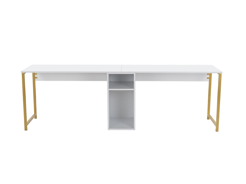 Proměňte svůj studijní prostor ve stylovou a funkční oázu s naším elegantním a moderním studijním stolem. Tento stůl je vyroben ze 100% dřevotřísky s melaminovým povlakem, takže je nejen odolný, ale také neuvěřitelně elegantní. Elegantní kombinace bílé a zlaté barvy dodá každé místnosti nádech sofistikovanosti a stane se tak perfektním doplňkem vašeho domova.