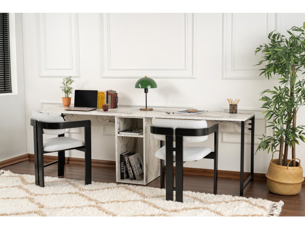 Proměňte svůj studijní prostor ve stylovou a funkční oázu s naším elegantním a moderním studijním stolem. Tento stůl je vyroben ze 100% dřevotřísky s melaminovým povlakem, je nejen odolný, ale také se snadno čistí, což zaručuje jeho dlouhou životnost. Kovové nohy s elektrostatickým práškovým nástřikem dodávají nádech industriální elegance, zatímco prostorný design poskytuje dostatek místa pro všechny vaše studijní potřeby.