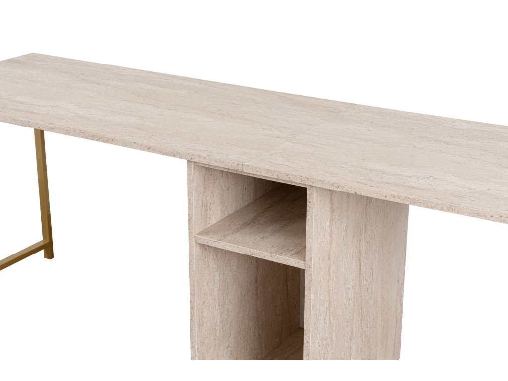 Proměňte svůj studijní prostor v luxusní a funkční útočiště s naším úžasným mramorovým studijním stolem. Tento stůl je vyroben ze 100% dřevotřísky s melaminovým povlakem a je nejen odolný, ale také vyzařuje eleganci díky kombinaci travertinu a zlaté barvy.