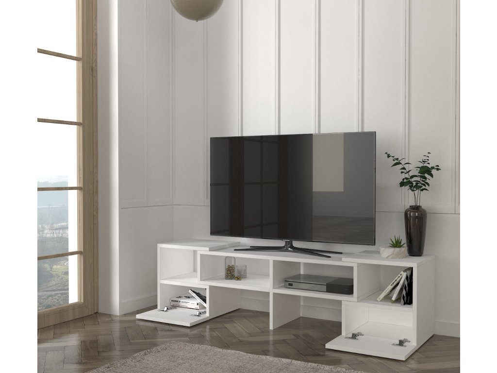 DUOS rovný/rohový TV stolek, bílý