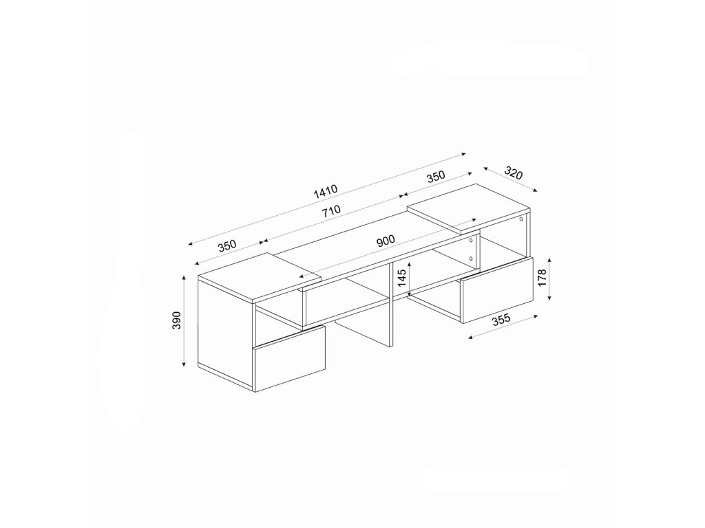 Rozměry rovného stolku: š 141 xh 32 xv 39 cm
