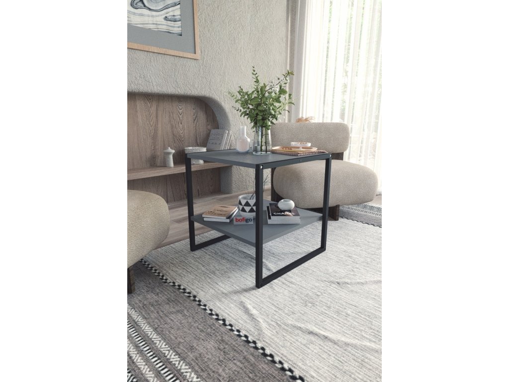 Desky konferenčního stolku jsou vyrobeny z 18 mm dřevotřískové desky. Konstrukce je vyrobena z kovu v černém provedení. Stolek je čtvercového tvaru.