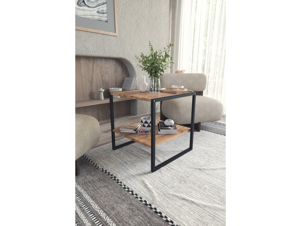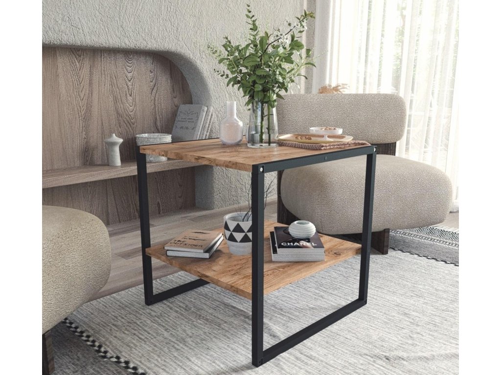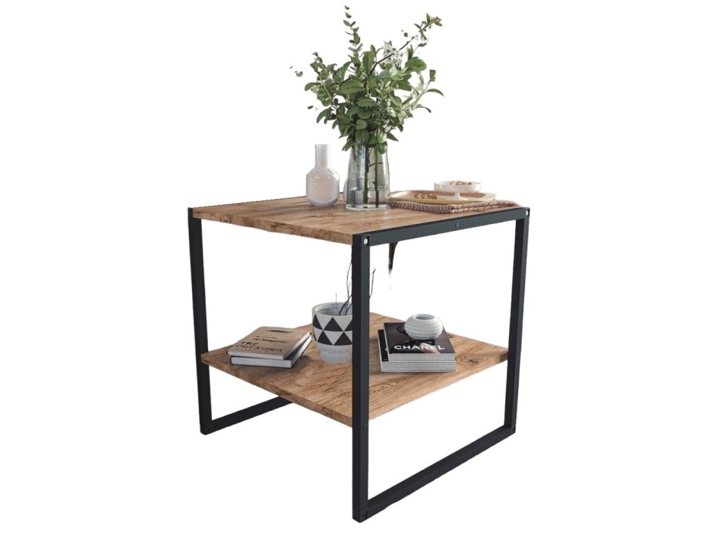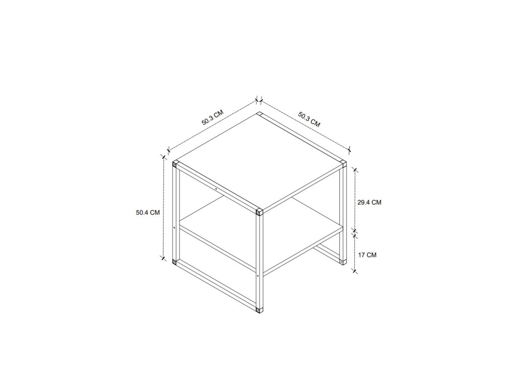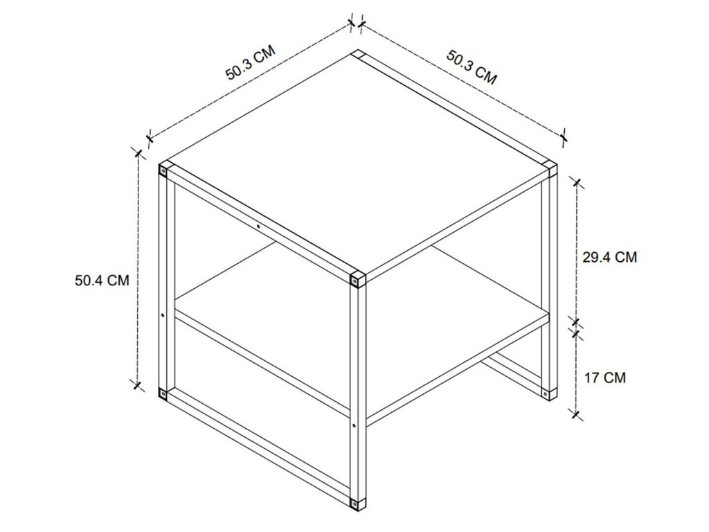 Desky konferenčního stolku jsou vyrobeny z 18 mm dřevotřískové desky. Konstrukce je vyrobena z kovu v černém provedení. Stolek je čtvercového tvaru.