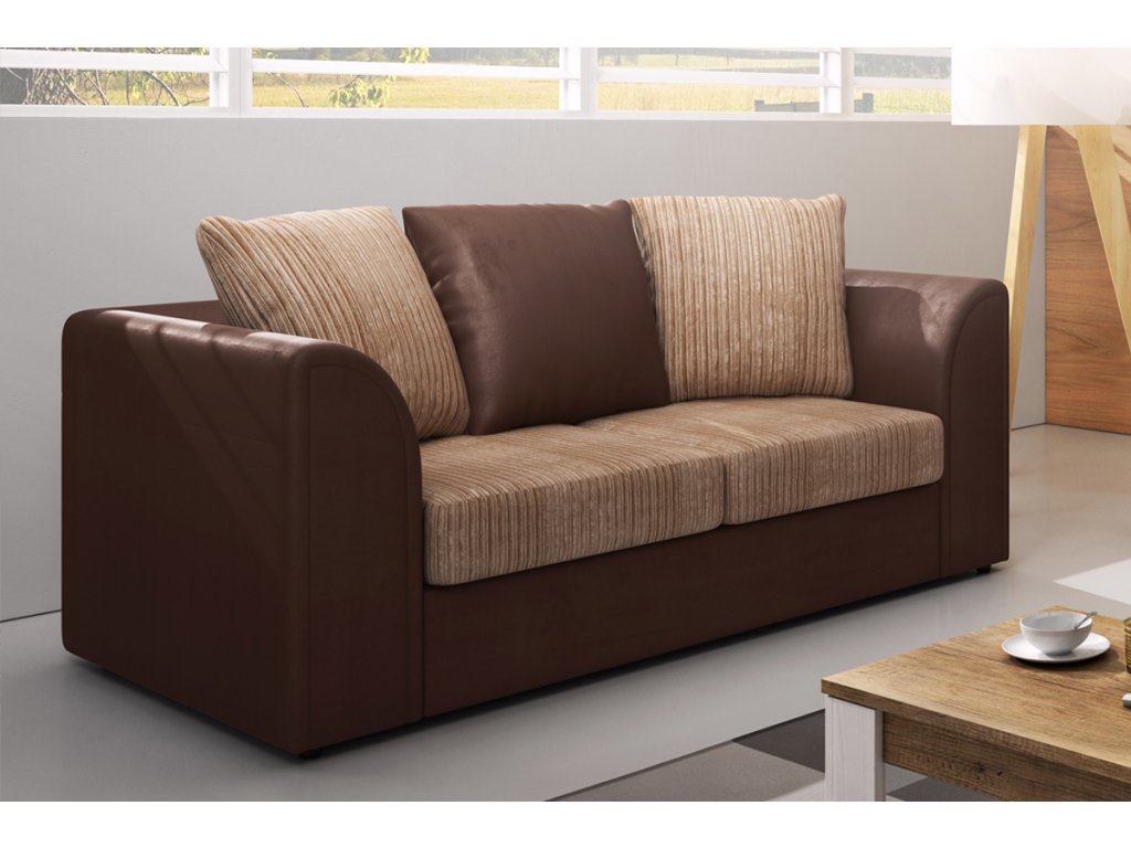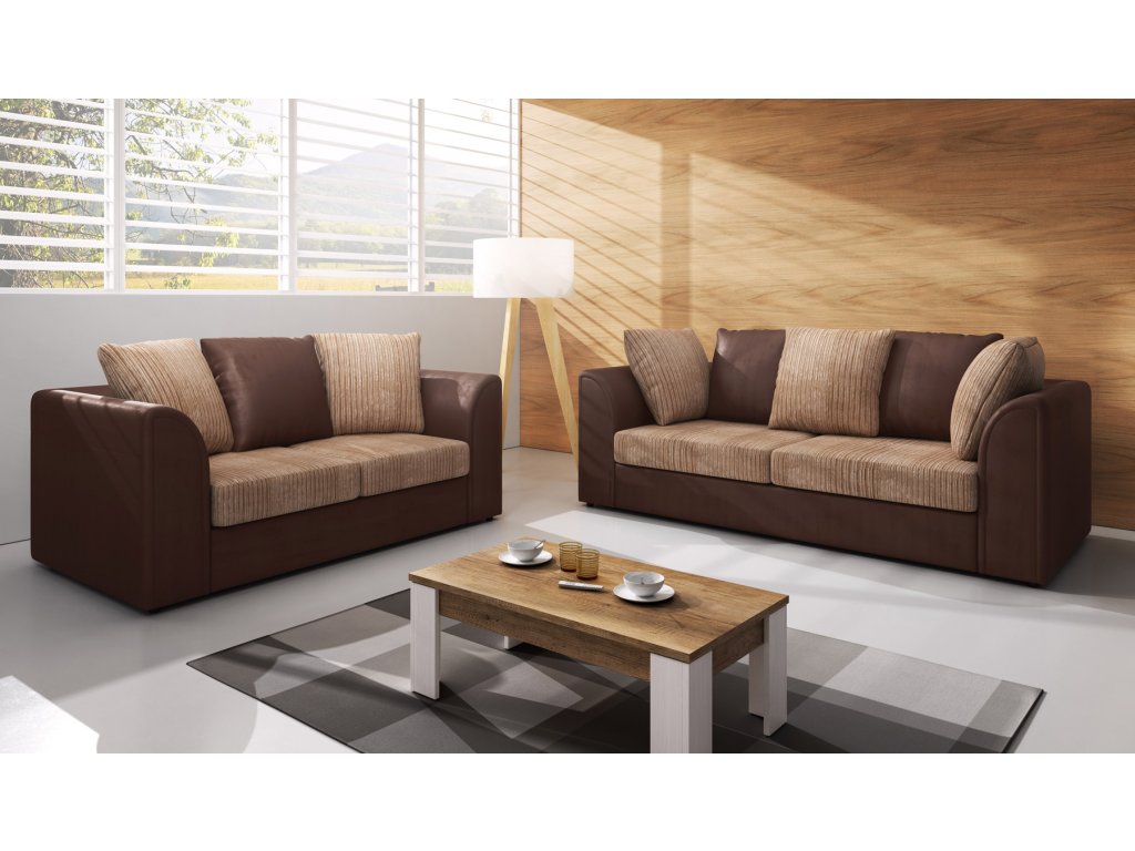 Sedačka Dylen v moderním dvoubarevném provedení, patří mezi dvousedáky. Její design je vytvořen rovnými liniemi a stylovými opěrkami s polštáři. K dvojsedáku máte možnost doobjedat si i trojsedák Dylen a vytvořit tak variabilní sedací soupravu vhodnou jak do menších, tak i větších prostor. Konstrukce sedačky je ze dřeva. Sedací plocha je v kombinaci pěny T25/30 a zvlněné pružiny. Polštáře jsou plněné silikonovými kuličkami. Sedačka je čalouněna kombinací eko-kůže v hnědé barvě a látkou v barvě mocca. Rozměr sedačky: (š/h/v) 157 x 79 x 63 cm. V nabídce máme také rohovou sedačku Dylen a další barevná provedení.Doplňkové parametry