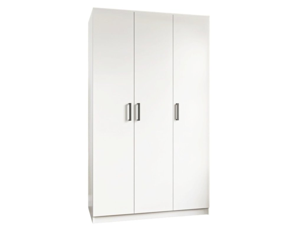 EASY je jednoduchá třídveřová šatní skříň, která se díky svým rozměrům vejde i do malých prostor. Vnitřní rozložení nabízí čtyři police a závěsnou tyč. Díky výšce 205 cm získáte dostatek úložného prostoru. Je vyrobena z kvalitní LTD desky.