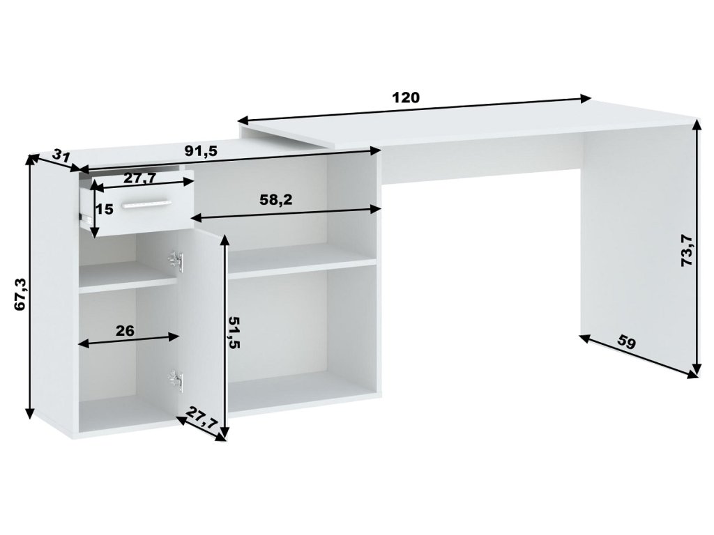 Moderní psací stůl ELENA se vyznačuje svou praktičností a nabídkou velkorysého pracovního místa a úložného prostoru. Jeho praktičnost spočívá zejména v tom, že se dá umístit i rovnou ke stěně a také do pravého nebo levého rohu místnosti.