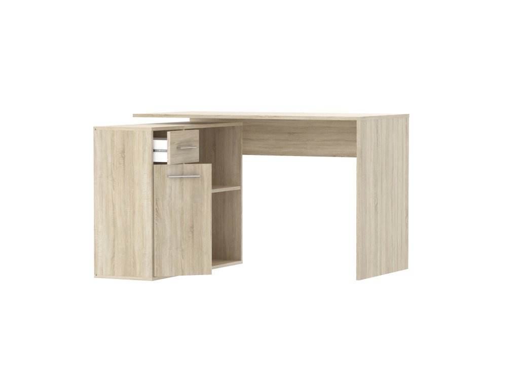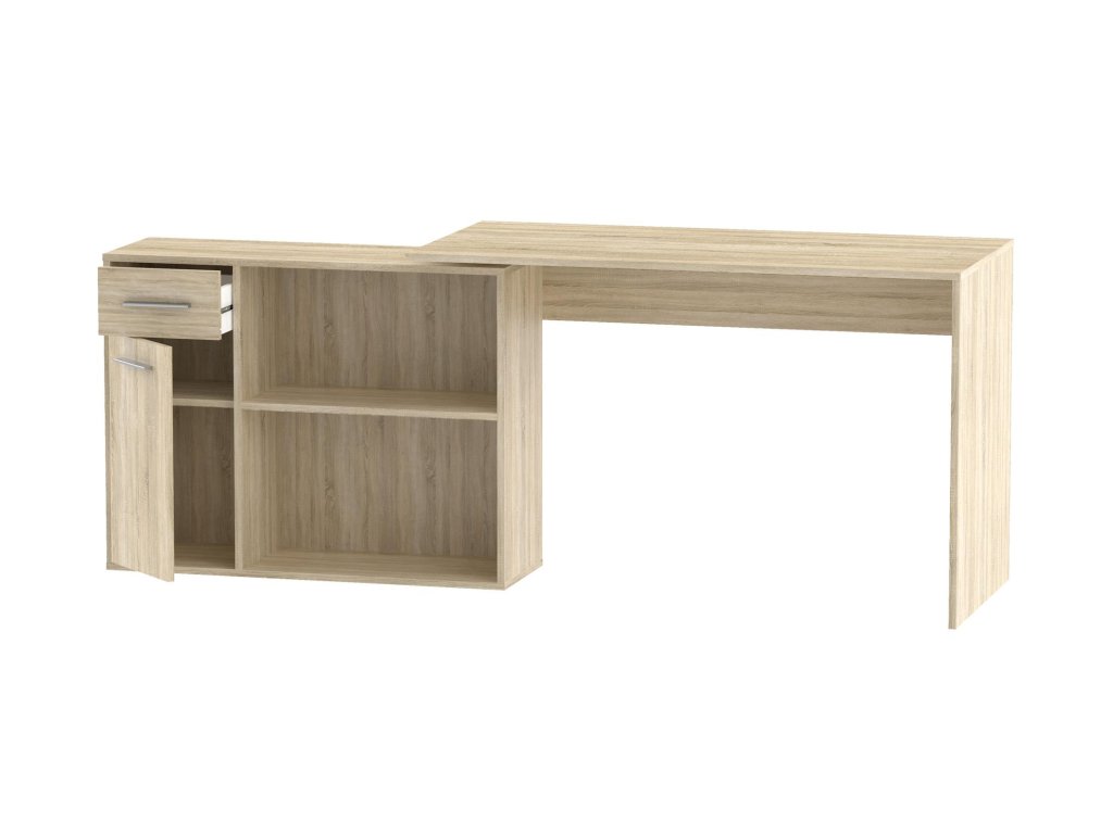 Moderní psací stůl ELENA se vyznačuje svou praktičností a nabídkou velkorysého pracovního místa a úložného prostoru. Jeho praktičnost spočívá zejména v tom, že se dá umístit i rovnou ke stěně a také do pravého nebo levého rohu místnosti.
