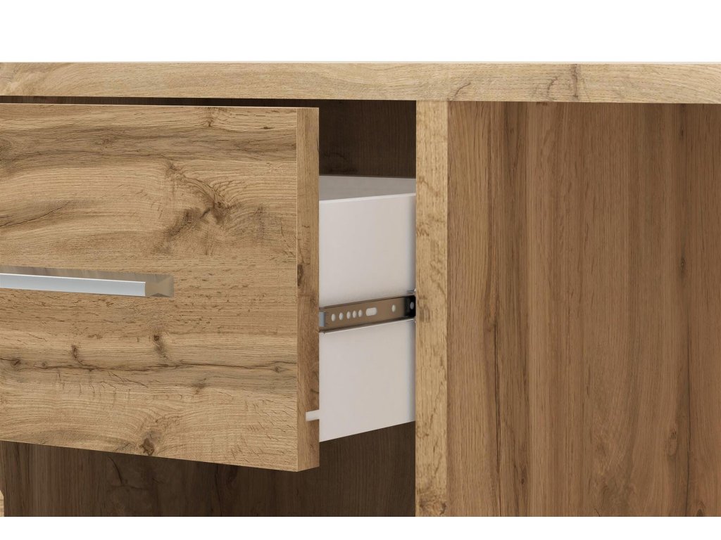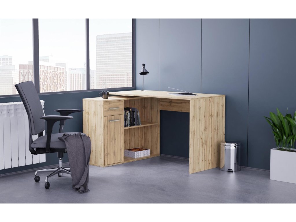 Moderní psací stůl ELENA se vyznačuje svou praktičností a nabídkou velkorysého pracovního místa a úložného prostoru. Jeho praktičnost spočívá zejména v tom, že se dá umístit i rovnou ke stěně a také do pravého nebo levého rohu místnosti.