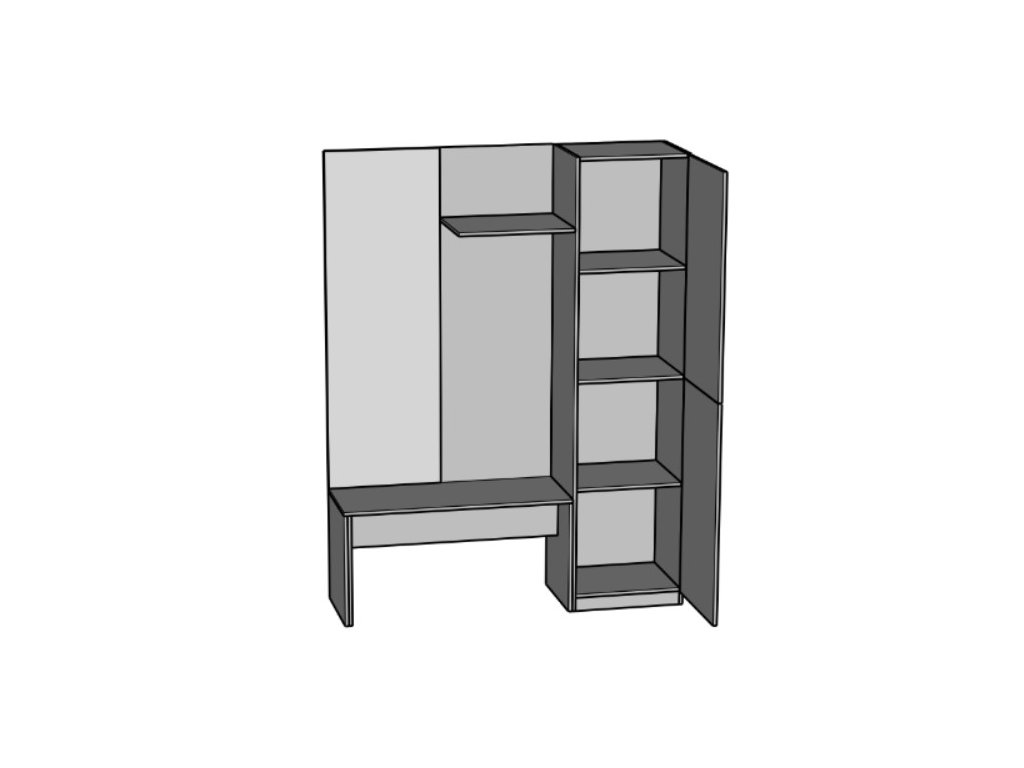 - Věšáky: háčky na zadním panelu a šatní tyč