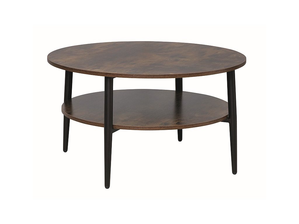 Stolek je vyroben z LTD desek, které jsou nenáročné na údržbu. Je v kulatém provedení. Nohy jsou kovové.