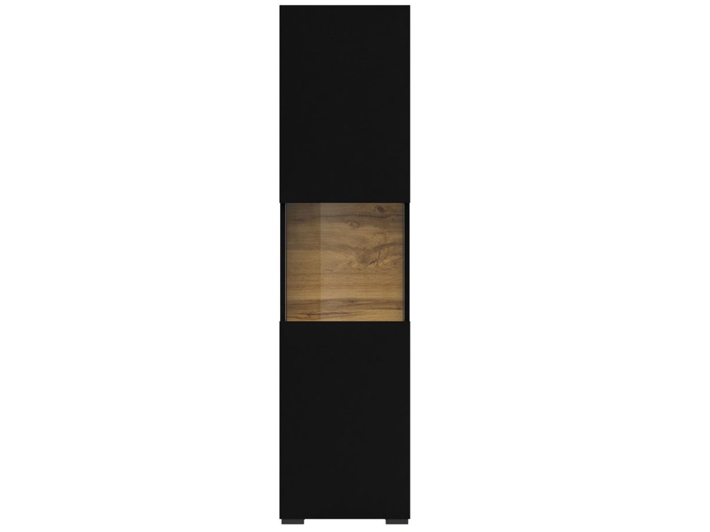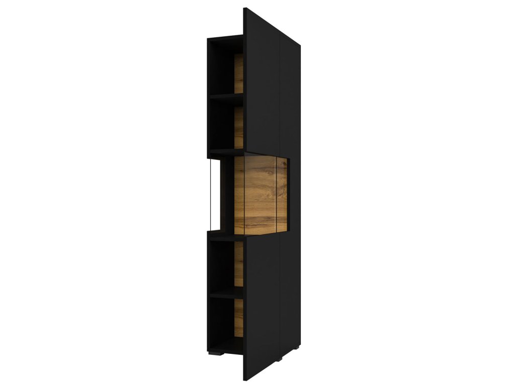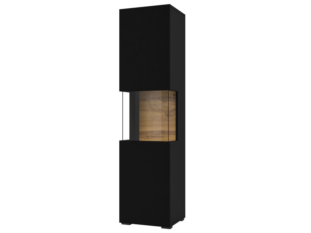 Skříňka EMMA 05 má jedny dvířka, která jsou uprostřed prosklené a za nimi se nacházejí praktické police.
